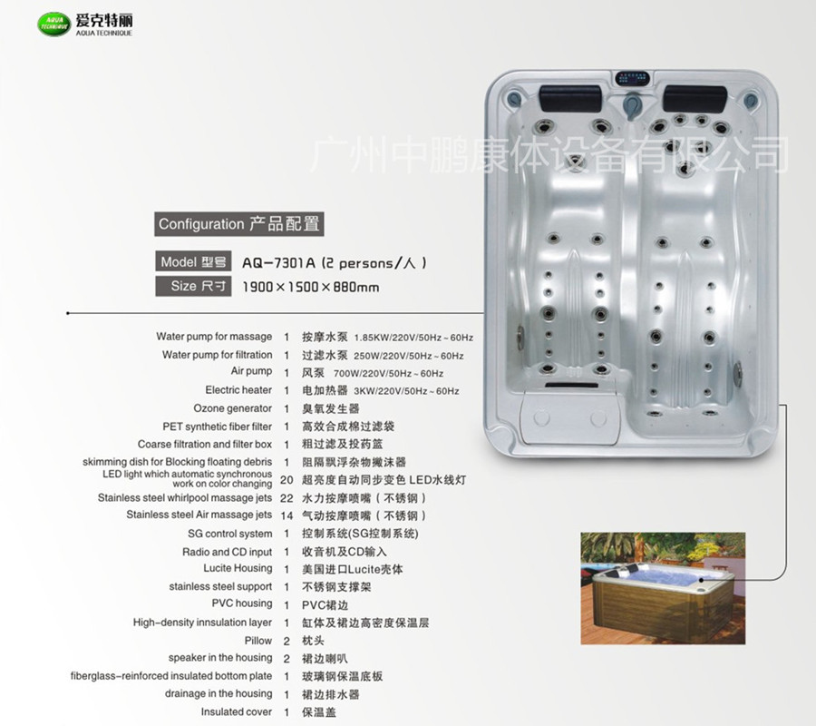 2017年6月海東市凱博酒店向我司采購兩臺愛克特麗品牌(2-5人)的按摩浴缸,我司將秉承以往良好的服務態度,優質的服務質量,打造更多更好的室內、外恒溫泳池、SPA水療、溫泉度假村、水上樂園等健康休閑的娛樂場所。